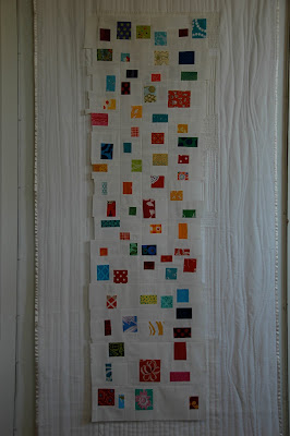 A little bit of scrap management going on, here. I have loved the "Snippets" quilt from the first time I saw it. Some small scraps have been gathered over time, and now it was time to try it out. Most of the white fabric was "Kona Snow" small scraps from previous quilts, I just added a few strips, like the tutorial shows. It will be around 15" by 45" by the time it's finished.